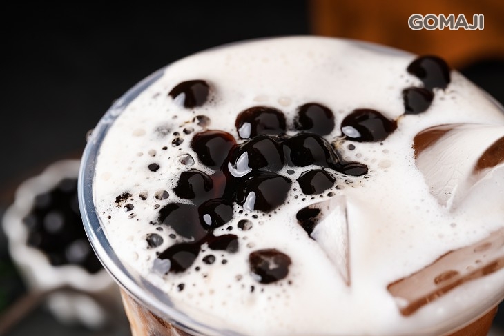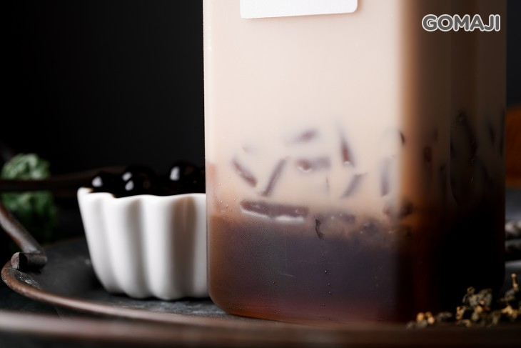 顆顆水潤柔滑的黑珍珠,沉澱在乳白色的香濃牛奶中,琥珀色的黑糖,在一片雪白中綻放出美麗花紋。輕吸一口,珍珠Q彈香甜的滋味,被馥郁的奶香緊緊包覆,整體口感不過於甜膩,絕對會是奶茶控的最愛!