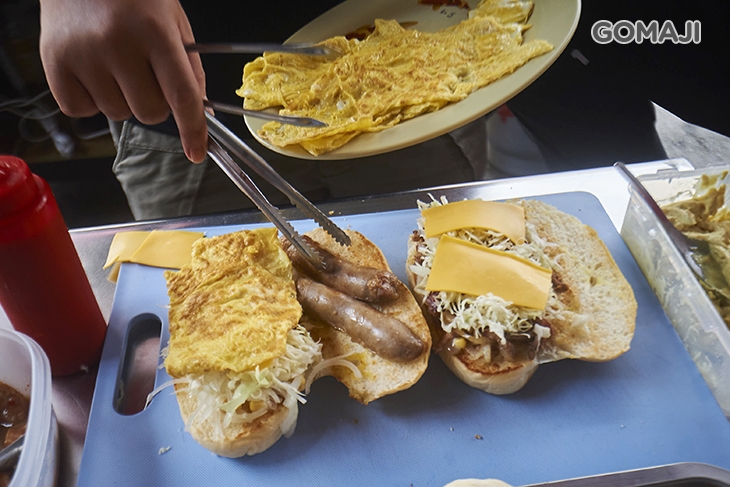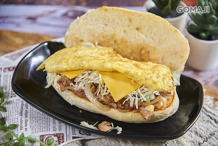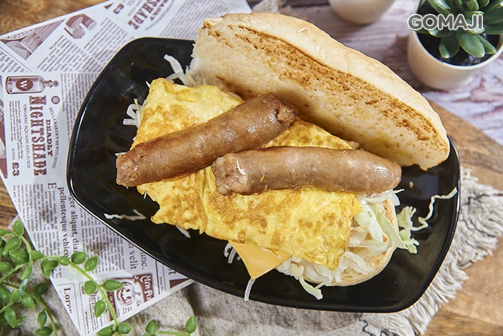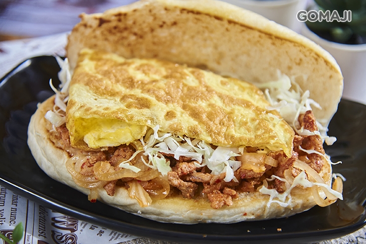 外酥內軟的漢堡麵包,裡頭放進剛烹飪拌炒好的韓式泡菜燒肉,最後佐上些許高麗菜絲、煎蛋相襯品嚐,料好味佳,酸酸甜甜帶點微辣滋味,無比開胃,用餐時刻來上一份,幸福滿分。