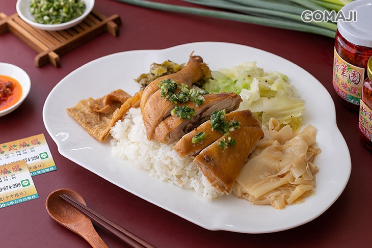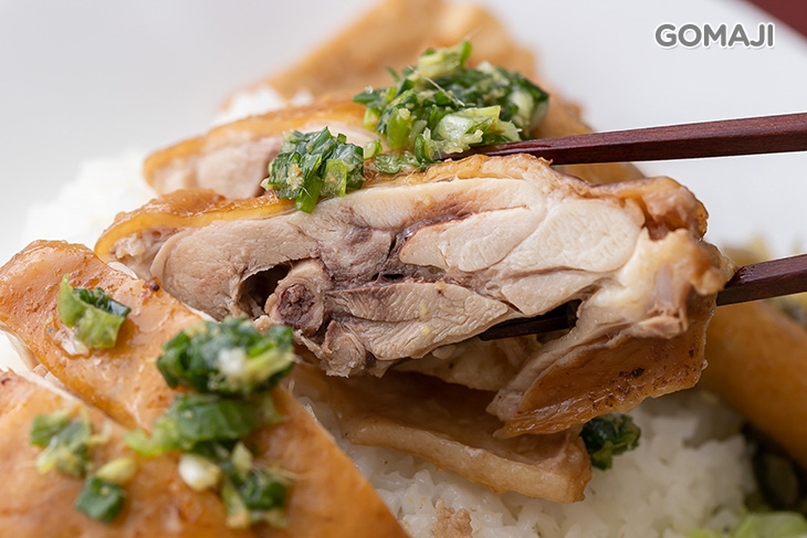 來份蔥油雞腿吧!只見店員以快速且俐落的手腳將雞腿切塊,擺放於白飯上頭再澆淋自家獨門自製的蔥油醬汁提味增香,入口先是感受雞皮的Q勁,再者是雞肉的嫩滑,最後再迸發出蔥油的濃郁蔥香,三者合而為一,美味讓人著迷。