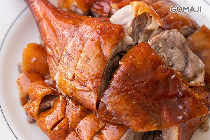 皮油油亮亮、肉塊塊實在的美味港式烤鴨,現點現切噴香上桌!趁熱入口,感受鴨皮經香烤後的酥脆,再者是鴨肉的嫩鮮多汁 ~ 在嘴裡仔細咀嚼,獨特誘人的肉香在齒舌間不斷環繞,無論單吃感受主廚料理好功夫,還是佐上一旁特製辣椒醬提味品嚐,辛香麻辣的滋味,開胃又涮嘴。