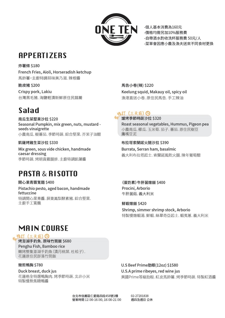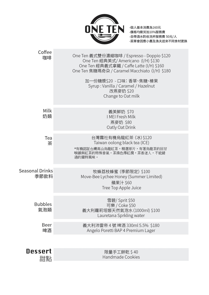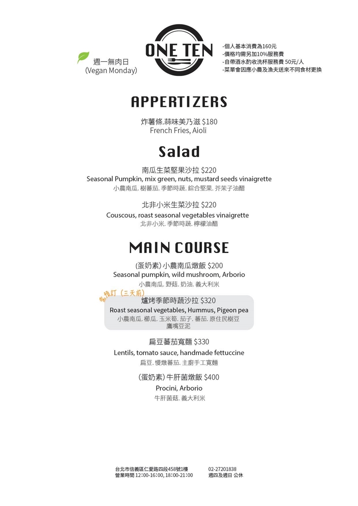 【ONE TEN Restaurant 食分之一餐館】感謝麻吉們熱烈搶購,已全數賣光光。