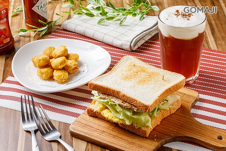 除了必點的手工蛋餅之外,份量厚實飽足的吐司系列也是不容錯過的美味唷!烤得酥香的吐司,中間夾入清脆爽口的生菜,以及鹹香味美、噴汁誘人的現煎肉排,還有水潤鬆軟、蛋香豐盈的煎蛋,大口咬下,各樣食材彼此堆疊出繽紛層次的口感享受,徹底滿足您的口腹之慾!