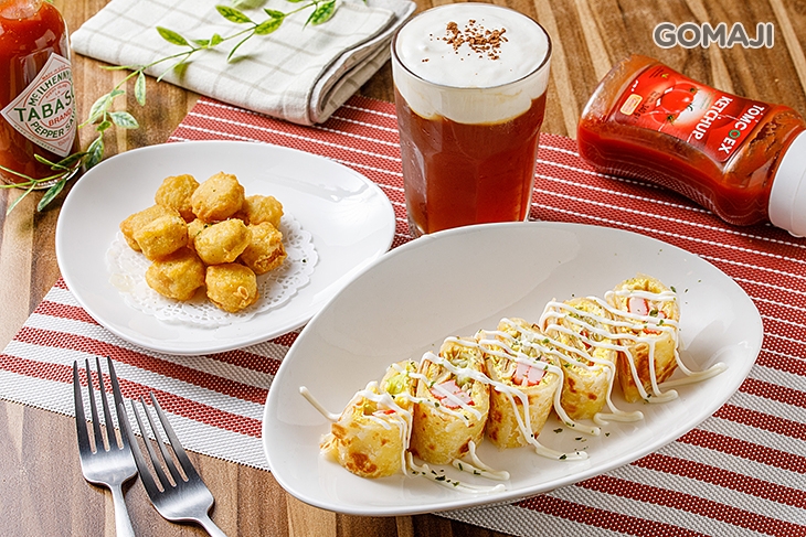 煎得酥香的手工餅皮中,除了鬆軟迷人的雞蛋之外,鮮香爽口的蟹肉沙拉,點綴出與眾不同的風味!有別於一般蛋餅的美味,擁有獨樹一格的魅力,彈嫩的蟹肉鮮甜清爽,與溫潤的蛋香彼此共譜出絕妙的滋味,讓人回味無窮!