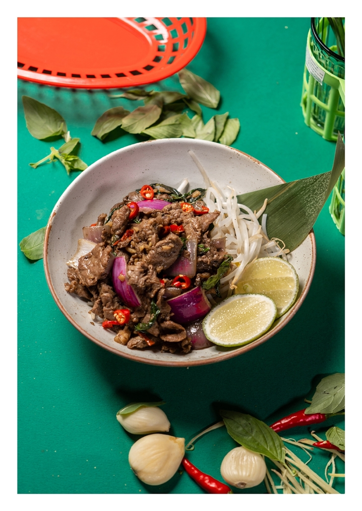 除了口味正宗、道地的泰式料理外,【So Bangkok】的主廚也善用巧思,創作出充滿新意的美味菜色,如這道「紹興爆炒牛肉」,看似一盤中式料理,其實巧妙地將曼谷風情融入其中,異國激盪出全新的味覺享受!
