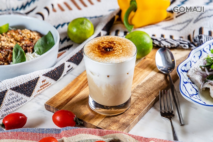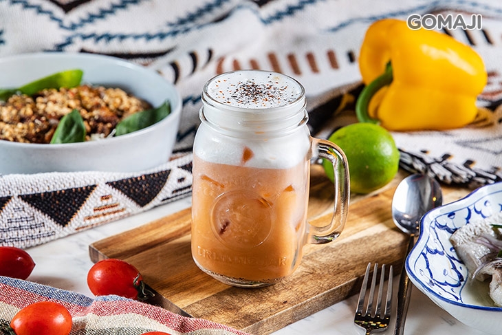 使用酸性紅土孕育而成的泰國茶葉,泡出來的茶感、茶香都與台灣人習慣喝的茶不同。自泰國本土栽種、品質上等的好茶葉沖泡而出的茶水,調入奶水後呈現較深的橘紅色,覆蓋上雪白綿密的奶泡,輕灑上些許香料增添香氣,不失道地,又充滿新意的泰式奶茶,別有一番風味!
