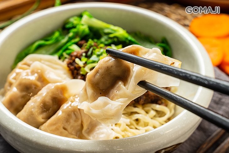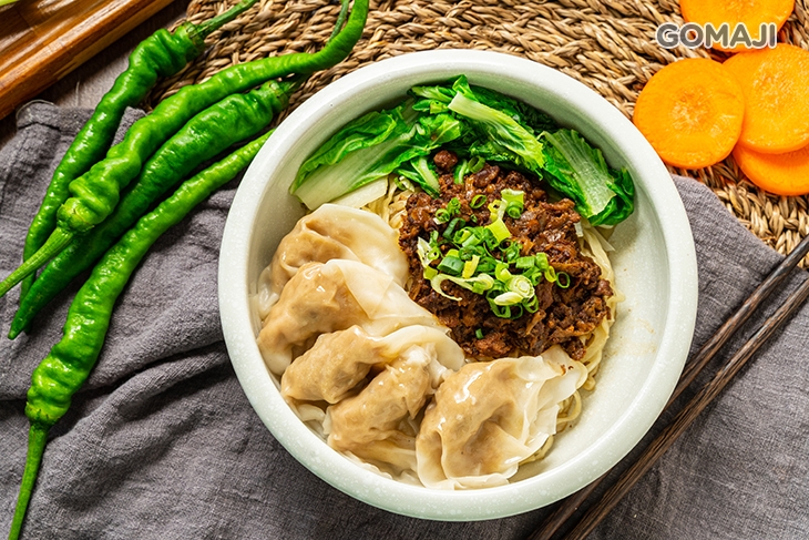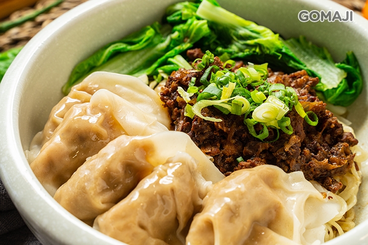 將滾水汆燙起鍋的乾麵條,盛進碗底,淋上上等食材烹煮而成的鮮美醬汁,將肉末與醬汁充分攪拌,讓麵條吸附滿滿醬汁,配上顆顆飽滿紮實的餛飩,皮Q料香、色香味俱全,經典不敗的家常美味值得推薦!