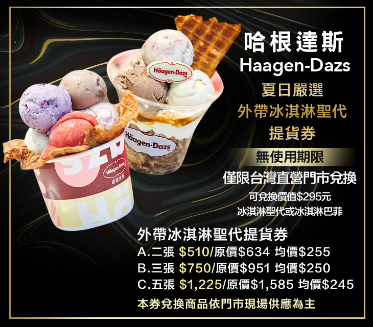夏日嚴選!限量!外帶冰淇淋聖代提貨券(可兌換價值$295元冰淇淋聖代或冰淇淋巴菲一份),無使用期限(僅限台灣直營門市兌換)