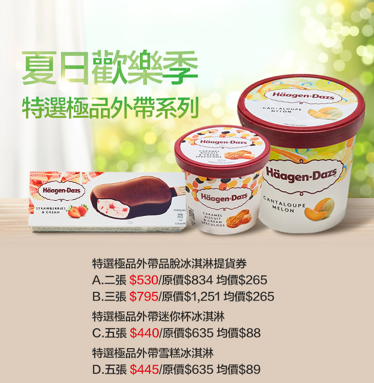 炎炎夏日,揪親朋好友一起吃個冰、消消暑吧!哈根達斯的冰淇淋吃起來不但甜而不膩,多層次的口感也總是成功擄獲不少冰品控的心~心動的麻吉可別再猶豫啦!現在就把清爽可口的冰品帶回家吧~
