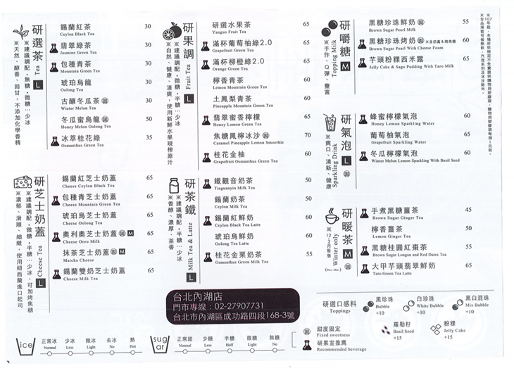 用心調配每一杯飲品,無論整體配色還是口感,都給您耳目一新的享受!茶葉品質追求,原料選擇講究,專業、不馬虎,讓細節成就完美喔!