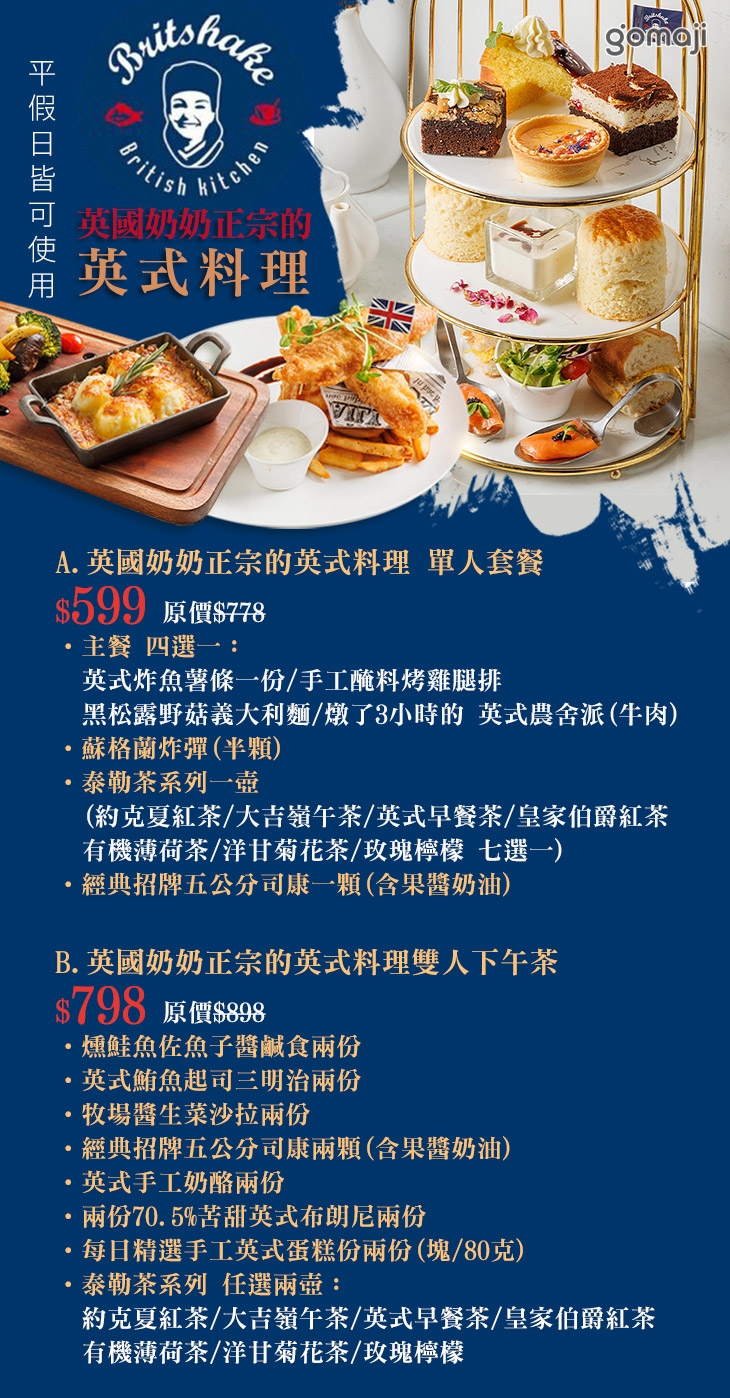 B.英國奶奶正宗的英式料理雙人下午茶