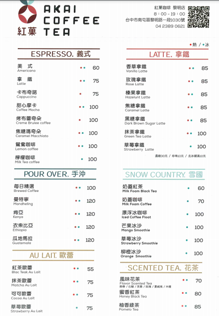 紅菓咖啡(黎明店) MENU