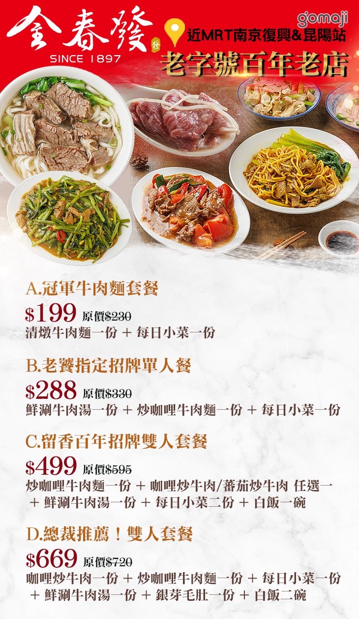 A.冠軍牛肉麵套餐