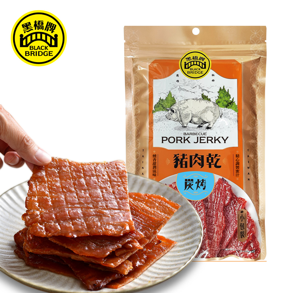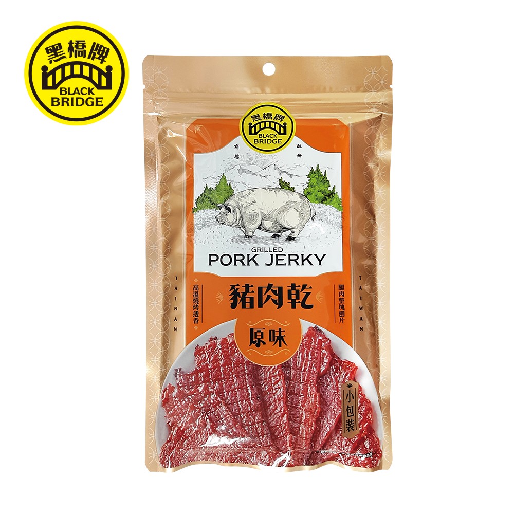 黑橋牌挑選優質豬肉,融入黑橋牌豬肉乾的傳家製程,以精心調製的甘醇滷汁輔以獨門配料,自然醃製16個小時以上,經過慢火細焙至肉乾表面透出紅光,口感柔滑軟嫩、鮮美甘甜,裁切成厚度0.5cm的條子肉乾,一口咬下~超Juicy的絕妙口感,瞬間擄獲人心,食用方便、免手撕,優雅品嚐豬肉乾的甜美滋味!