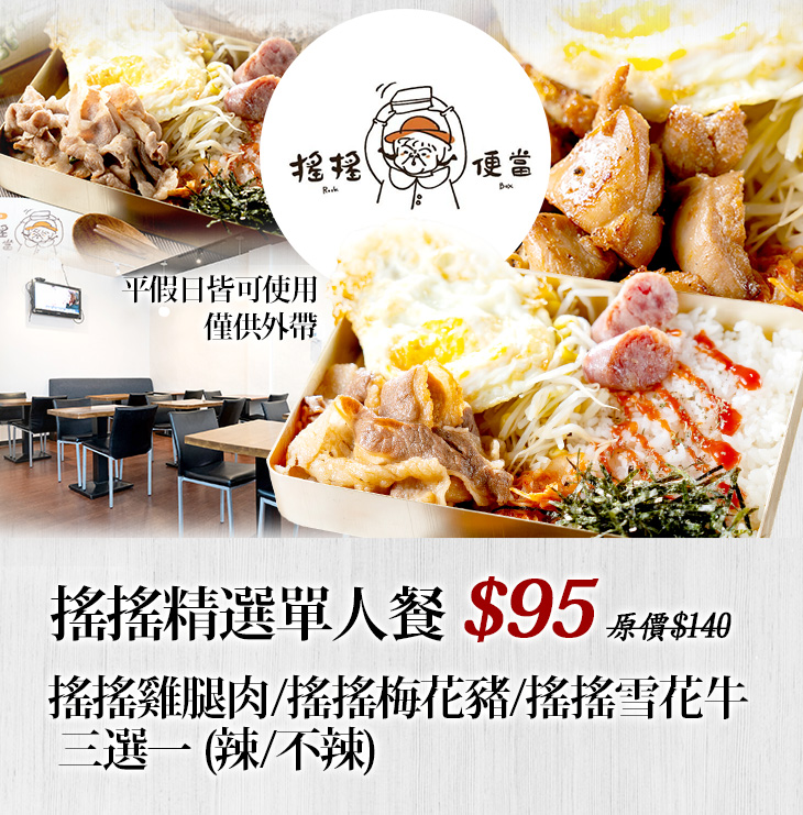 好吃!好玩!好有趣!韓國懷舊搖搖便當,給您不一樣的美食體驗。有著可愛招牌和店名的【搖搖便當 Rock box】,專賣韓國懷舊搖搖便當,有雞腿肉、梅花豬、雪花牛等精選口味,現做熱騰騰的美味,讓人回味無窮!而為什麼會叫搖搖便當呢?因為食用方法就是以「搖」為主啦!透過抓緊便當並用力搖30下這個方式,能完美地將醬汁、配菜、白飯搖拌均勻,在搖動的過程中,所有食材的香氣層層堆疊、融合,併發出最棒的風味唷!
