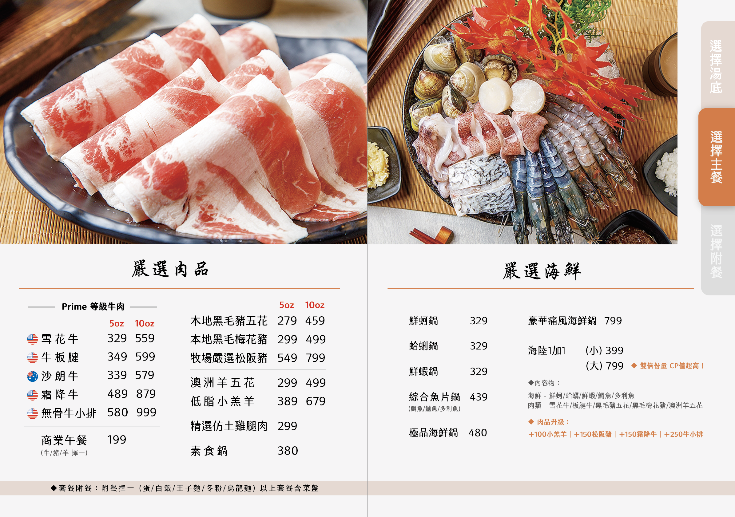 獨門招牌!溫潤濃醇的牛奶湯底與辛辣帶勁的麻辣湯底完美結合,光是聞到這香氣,就足以讓人口水直吞、食指大動啦~~~讓每片肉品的鮮甜精華多了一抹迷人奶香,濃郁香醇卻不會膩口,伴隨著香麻辛辣的強烈底蘊,保證讓您吃得超過癮!