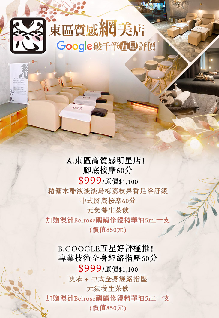A.東區高質感明星店!腳底按摩60分