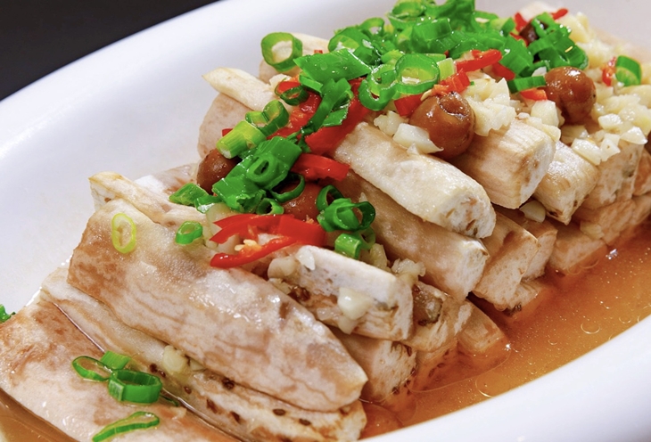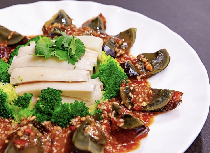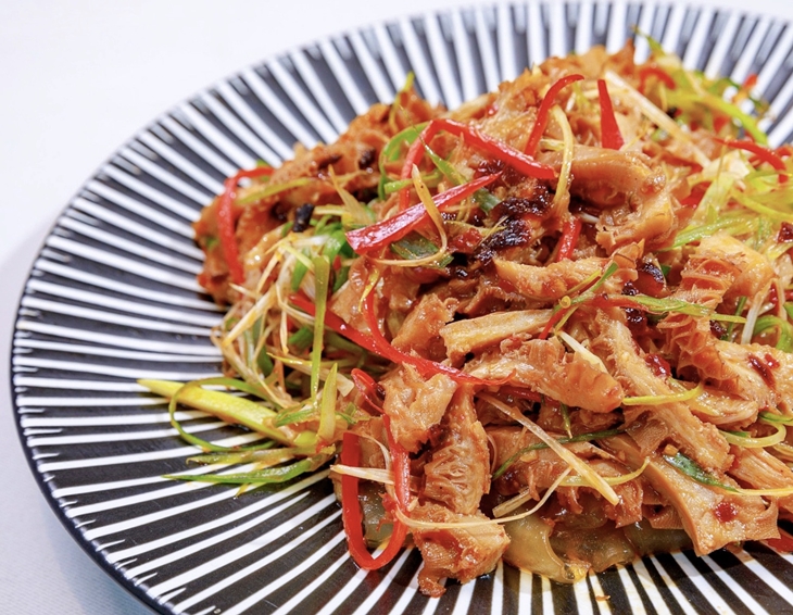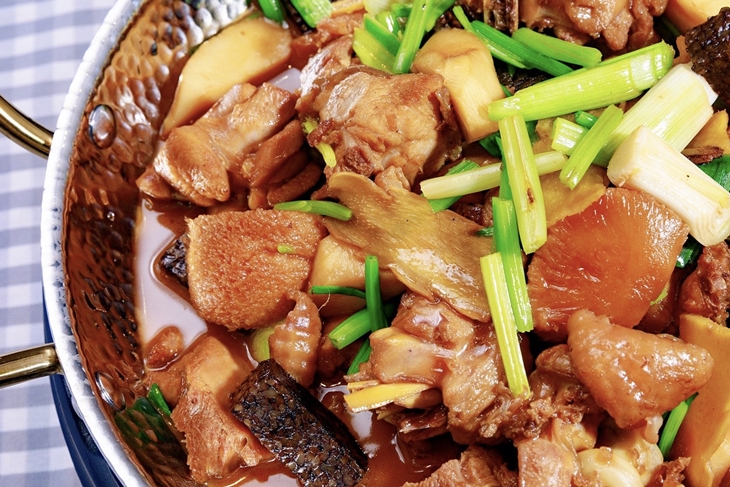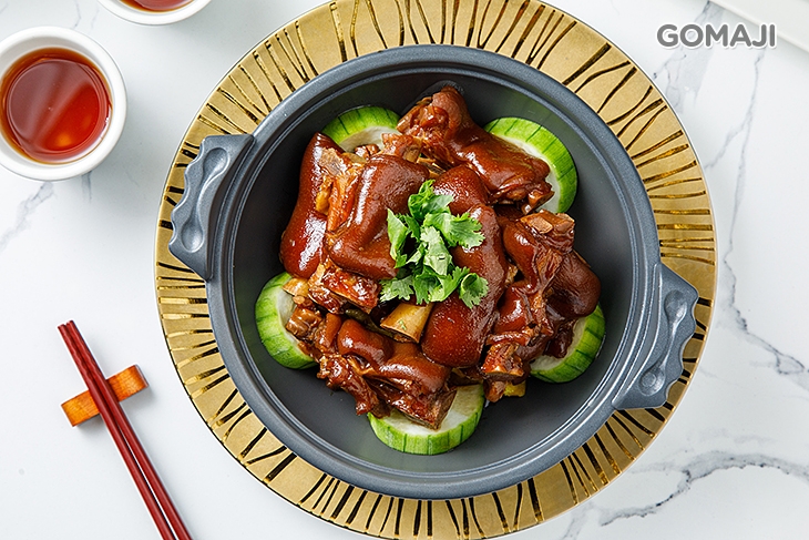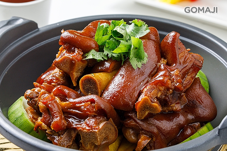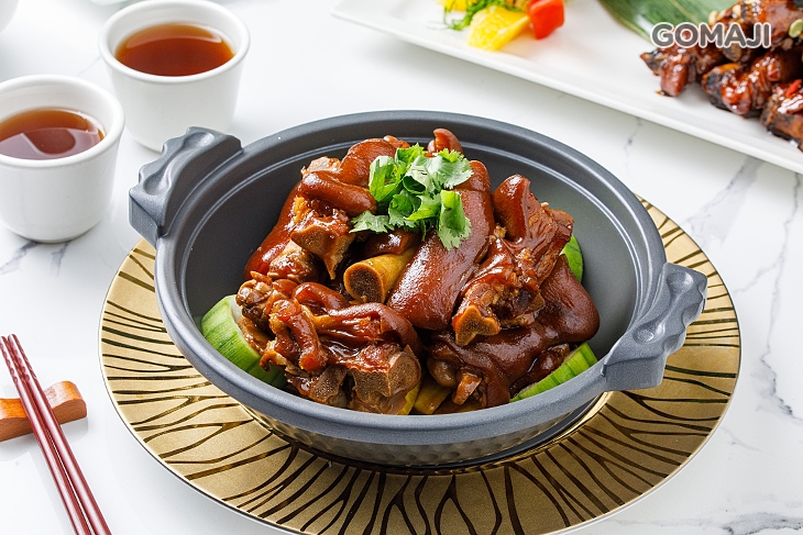 鹹香入味、十分下飯的焢豬腳,揀選品質最新鮮的豬腳,連皮帶骨文火慢燉,只見香氣醇厚、帶有甘甜的滷汁將大塊豬腳渲染上油亮誘人的琥珀色,一上桌便讓眾人紛紛拿起筷子爭食!細細品味,那彈嫩的豬皮對比著入口即化的油花,獨門滷汁的香氣和甘醇的肉香一拍即合,不油不膩的極品美味,帶來幸福至極的味蕾享受!