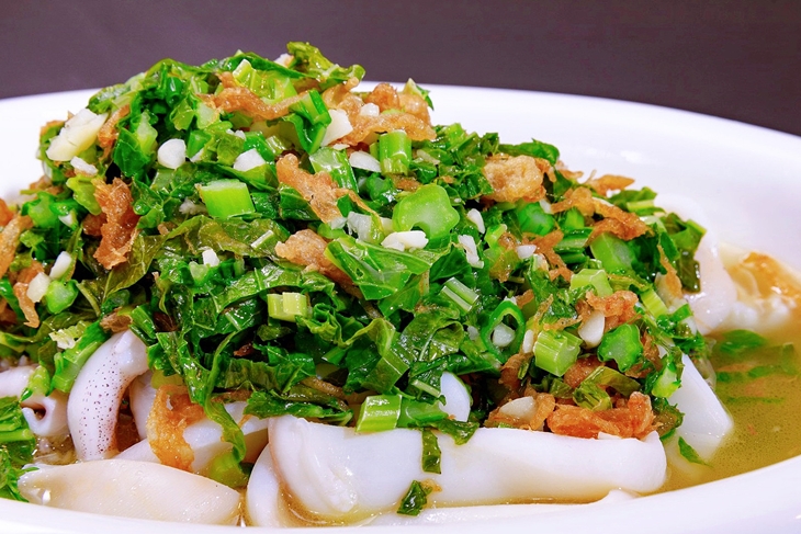 簡單汆燙過的白肉,肥瘦恰好,原味著吃可以享受到豬肉天然的肉醇香,沾取特製的蒜泥醬料享用,為整體點綴一點鹹與一點蒜頭的辛香,將肉的原味襯托得更為動人,叫人愛不釋口!
