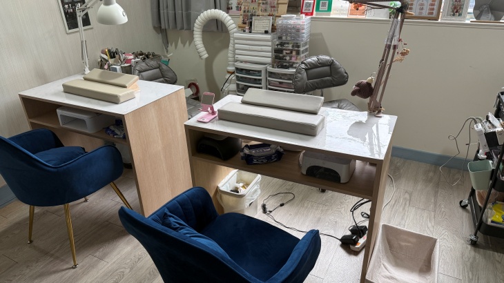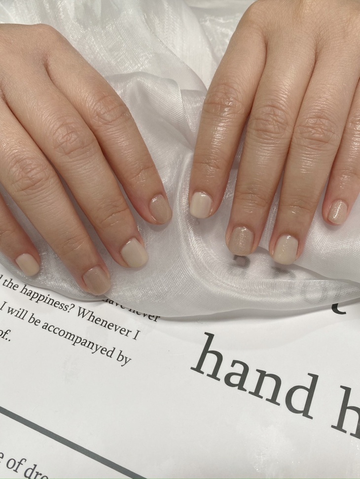 〈消毒清潔 + 指甲油去色 + 甲型修整 + 磨甲機甘皮推整 + 修磨兩側硬皮 + 甲面霧化 + 凝膠上色 + 指緣油滋養〉