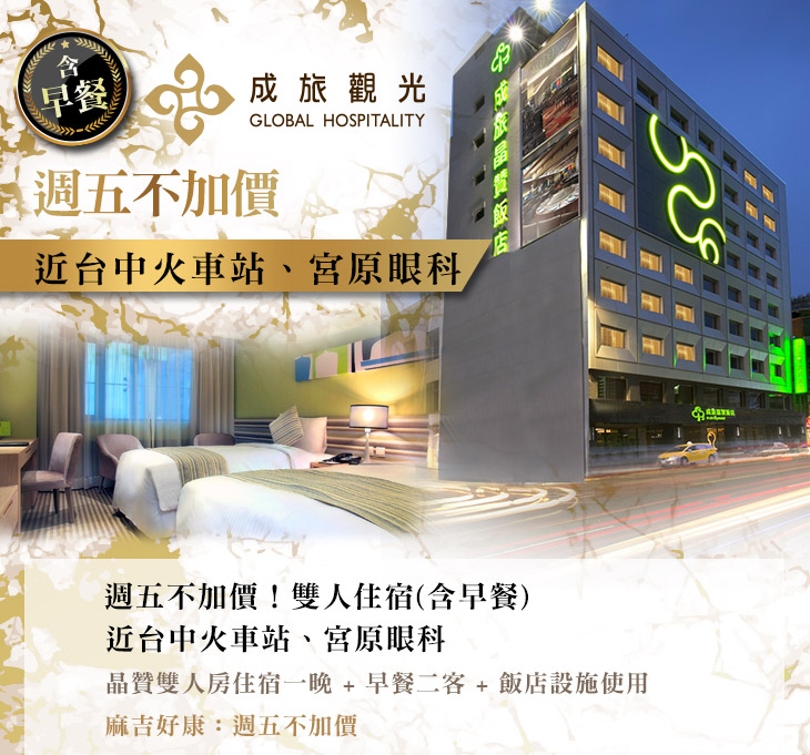 【成旅晶贊飯店 台中民權】感謝麻吉們熱烈搶購,已全數賣光光。
