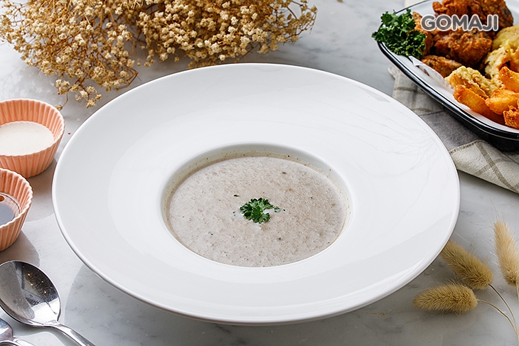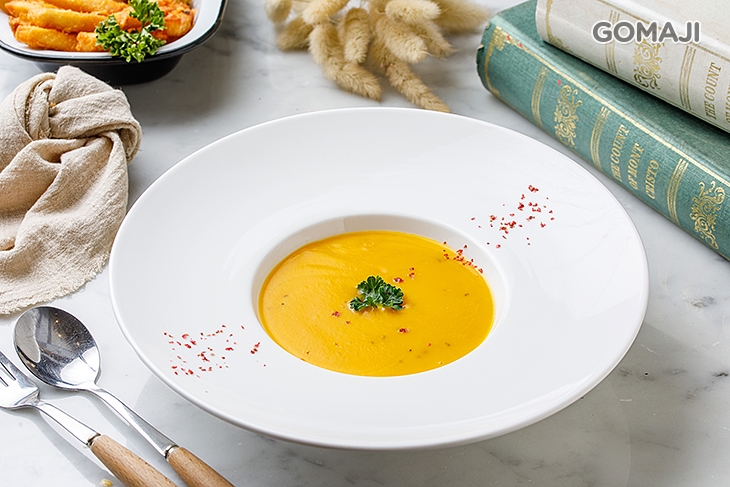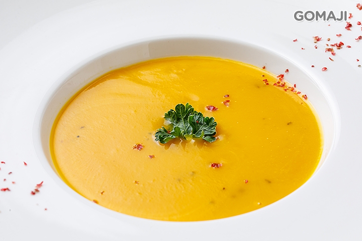 使用上好南瓜料理而成的南瓜濃湯,沒有添加多餘的調味或化學香料,讓南瓜最天然的甜香滋味完整呈現!金黃色的湯水,口感濃稠且絲滑,入口後便在齒唇間綻放豐盈的南瓜甜,加上培根的鹹香味美點綴在其中,醇厚美味叫人回味無窮!