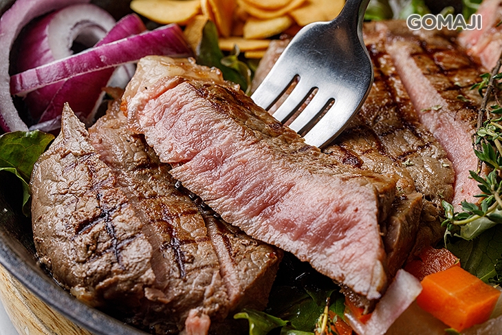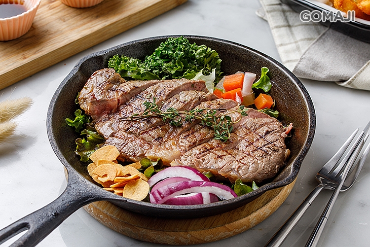 肉質上等的阪腱牛排,經由恰到好處的火侯香煎上菜,那細嫩柔軟的肉質,入口後便於齒唇間爆發豐厚的牛肉醇香,細緻高貴的口感,伴隨著些許酥煎過後的焦香,讓人欲罷不能!