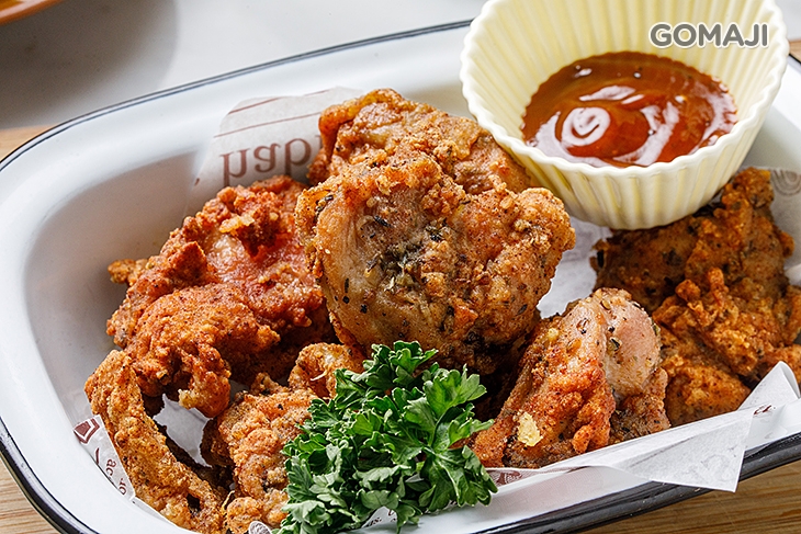 金黃脆嫩的炸雞,使用數種辛香料入味,迷人的塔可風味,讓這多汁誘人的炸雞吃起來與一般坊間的很不同!原味著吃,可以品嚐到豐沛的雞汁與香料交織的美味,沾取特製BBQ醬享用,那猶如火烤的醬香將原本的炸雞滋味襯托,更加好吃!