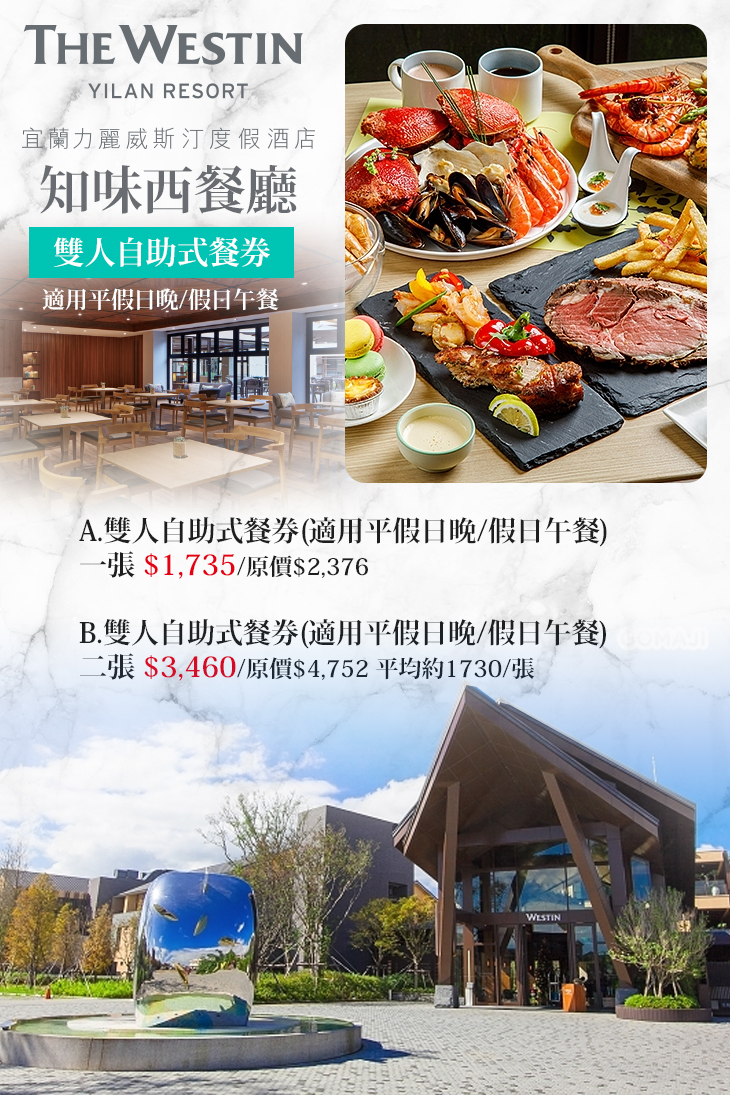 【宜蘭力麗威斯汀度假酒店-知味西餐廳】感謝麻吉們熱烈搶購,已全數賣光光。