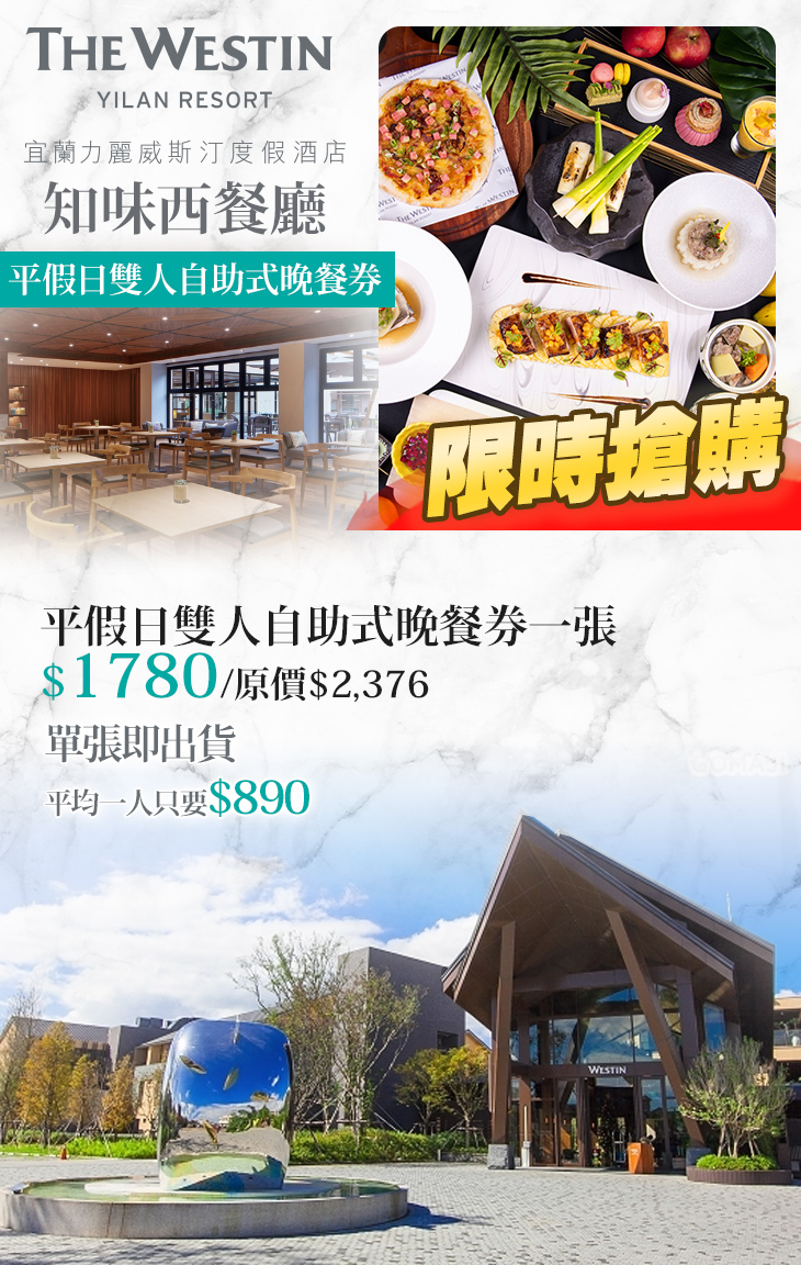【宜蘭力麗威斯汀度假酒店-知味西餐廳】感謝麻吉們熱烈搶購,已全數賣光光。