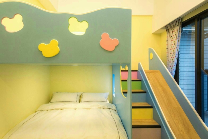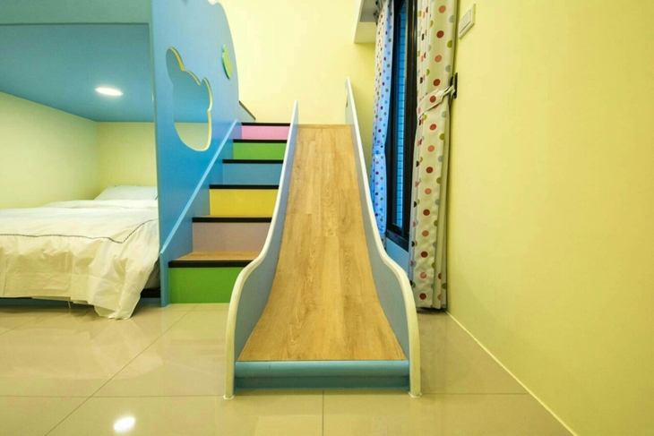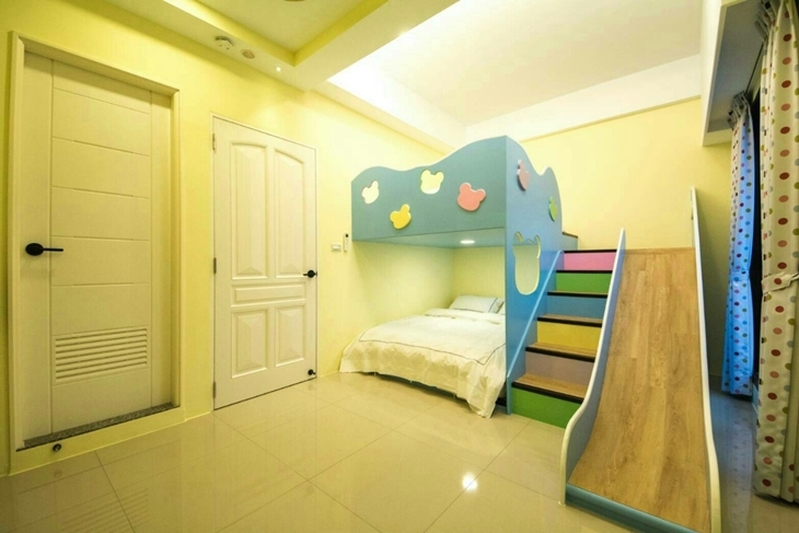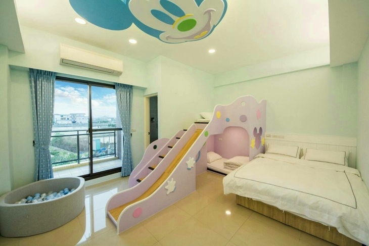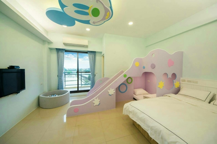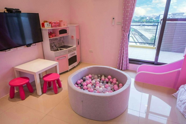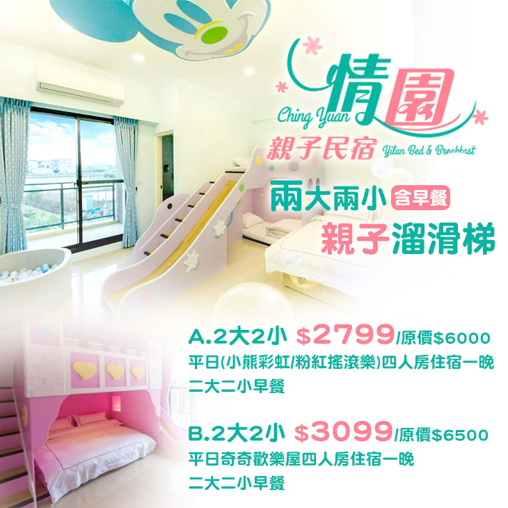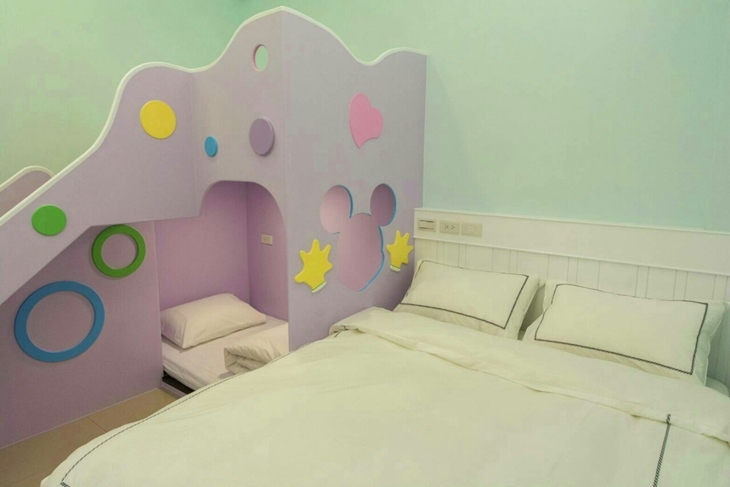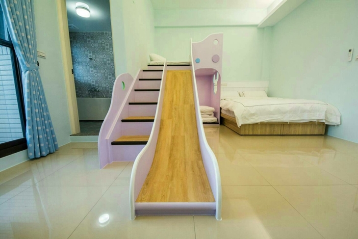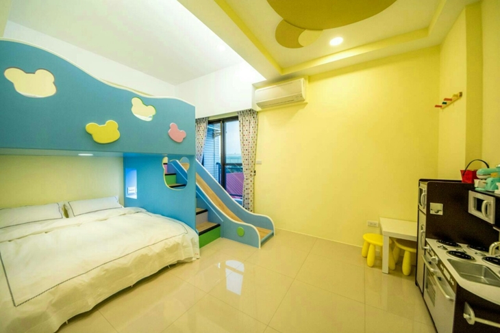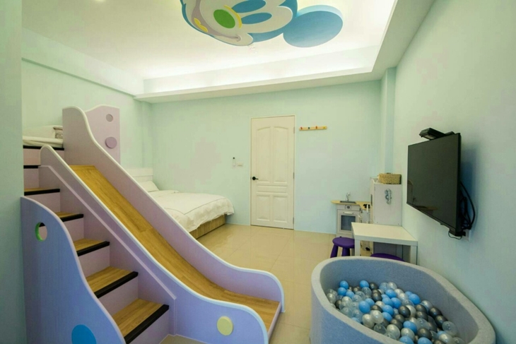 專為親子所設計的房型,除了最基本的寢具柔軟、乾淨、舒適外,衛浴備品也特地準備了孩子專用的產品!將溜滑梯、扮家家酒玩具、球池…等孩子最愛的元素融入裝潢設計中,當您踏入【情園親子民宿】房間,彷彿也翻開了一本童話故事書。