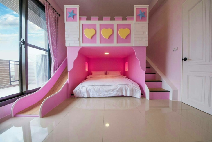 以粉紅色為主題的「粉紅搖滾樂」,絕對是小女孩們的最愛!夢幻有如公主睡床般床鋪,滿足每一位女孩的公主夢!球池、溜滑梯及不可或缺的扮家家酒玩具,更是讓孩子能樂在其中!外出旅遊不再僅限於戶外遊樂,在房間也能如此開心!