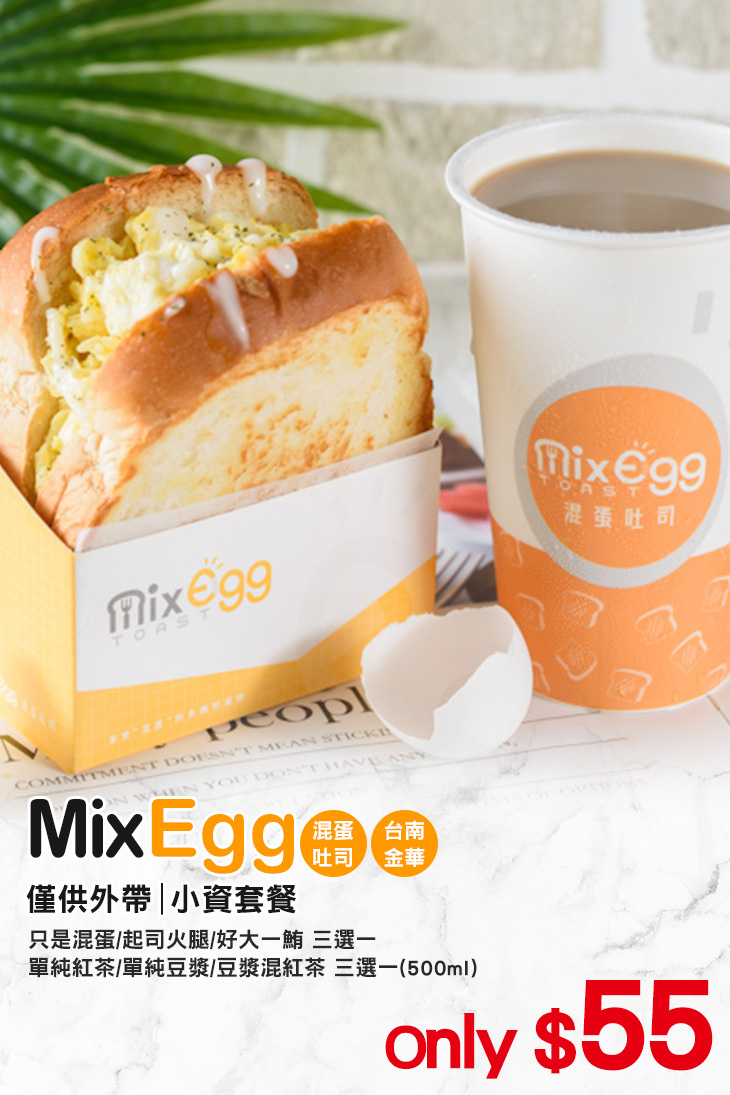 恭喜台南的吃貨麻吉不用再跑到屏東東港總店或是高雄分店,也能吃到【MixEgg混蛋吐司】的豐盛早餐啦~~~盒裝的現烤吐司加上滿滿配料,根本物超所值,難怪吸引了眾多饕客慕名而來!老闆希望提供新鮮有品質的餐點,所以每日限量供應唷!所謂「早起的鳥兒有蟲吃」完全應證的現實生活中呀!想吃到混蛋吐司的名不虛傳、料多實在的麻吉們,千萬要早點去排隊呀~別賴床呀!小心撲空了!
