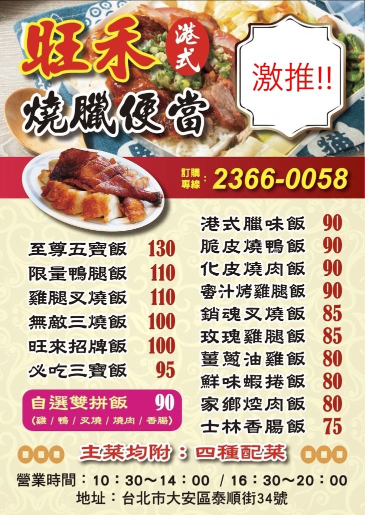 ◆ 旺禾港式燒臘便當 大安泰順店