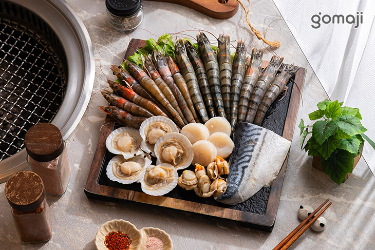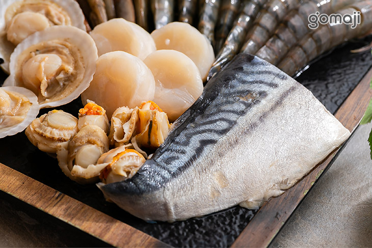 南方澳鯖魚/炙燒小扇貝/白蝦/黑鑽蝦/日式干貝燒