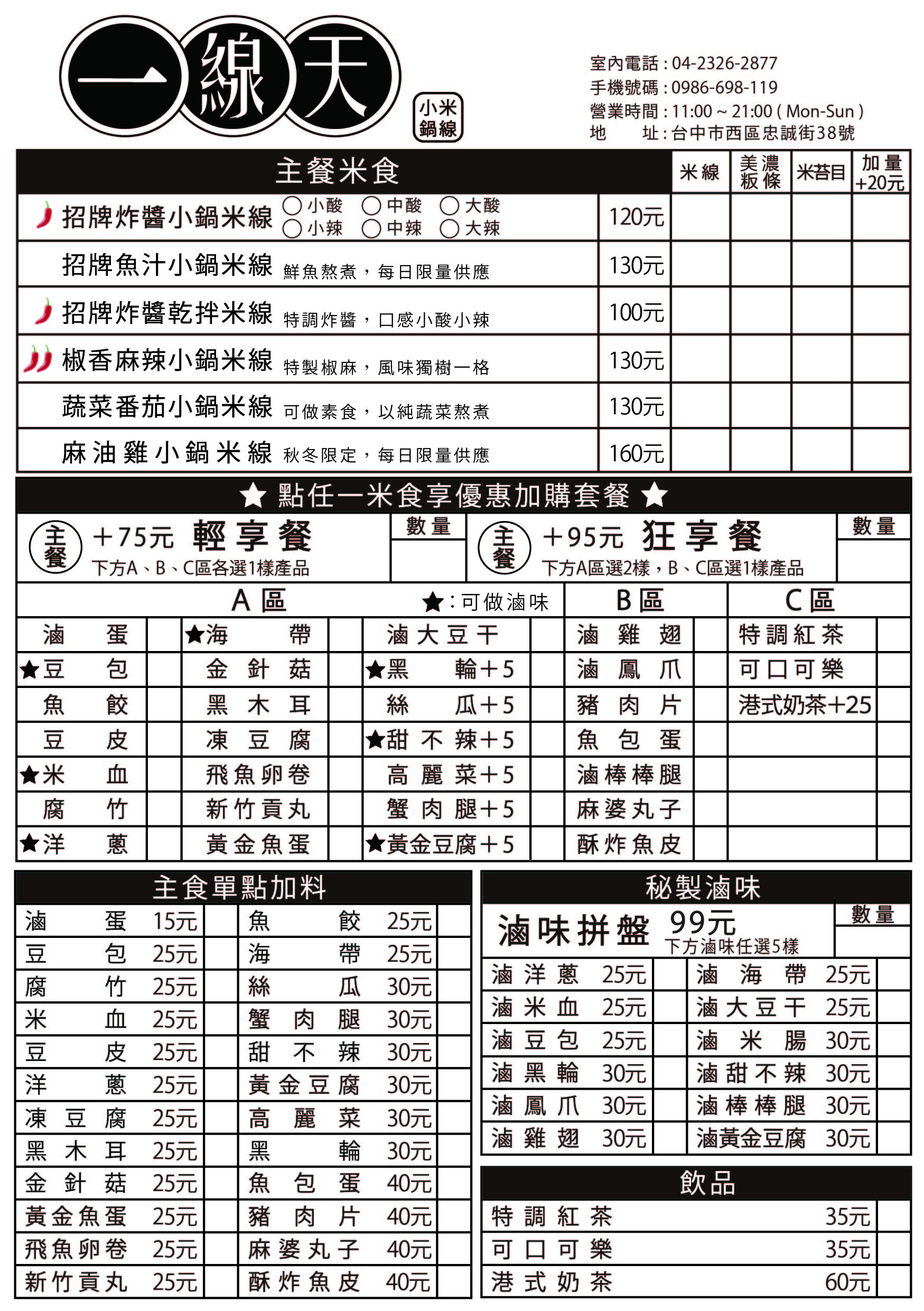 ※ 本方案僅能選購 30元加料及秘製滷味。