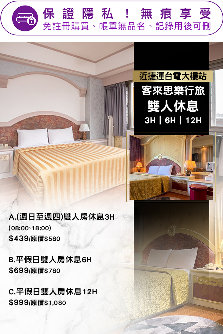 鄰近捷運台電大樓站2號出口!可輕鬆前往師大夜市、台大公館商圈等觀光景點,吃喝玩樂應有盡有,是安排台北旅遊的最佳夜宿地點唷~讓您用最平實的價格,享受最舒適的住宿環境!從設備到服務都帶給貴賓無微不至的照顧,保證讓您住得滿意又歡喜~彷彿在家生活般自在!