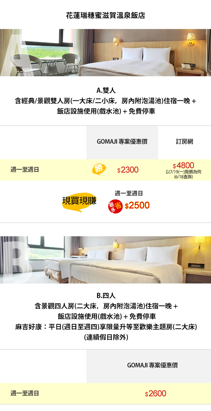 ★ 指定假日通通不加價,手刀搶訂房趁現在!全新開幕,花蓮瑞穗蜜滋賀溫泉飯店獨家首賣!