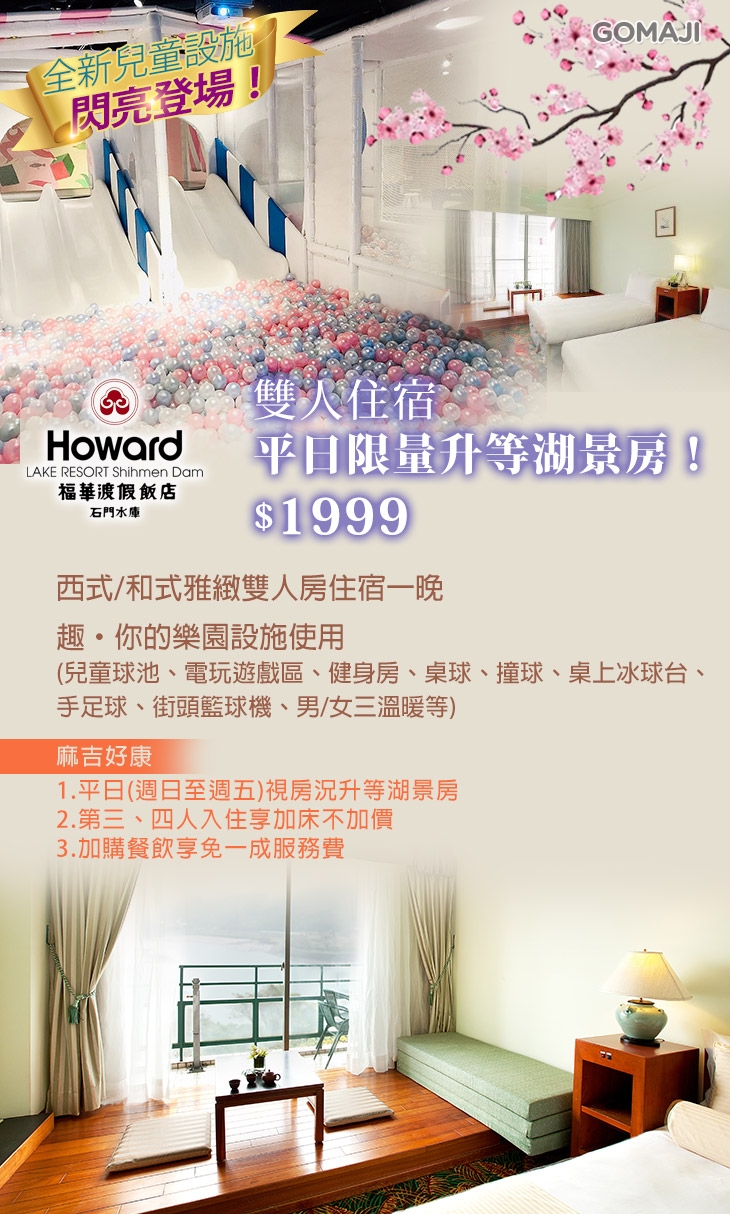 ★ 超好康!雙人平日限量升等湖景房、不分平假日第三、四人享加床不加價!適合2大、2大1小或2大2小一起入住,享受湖光山色的美景!