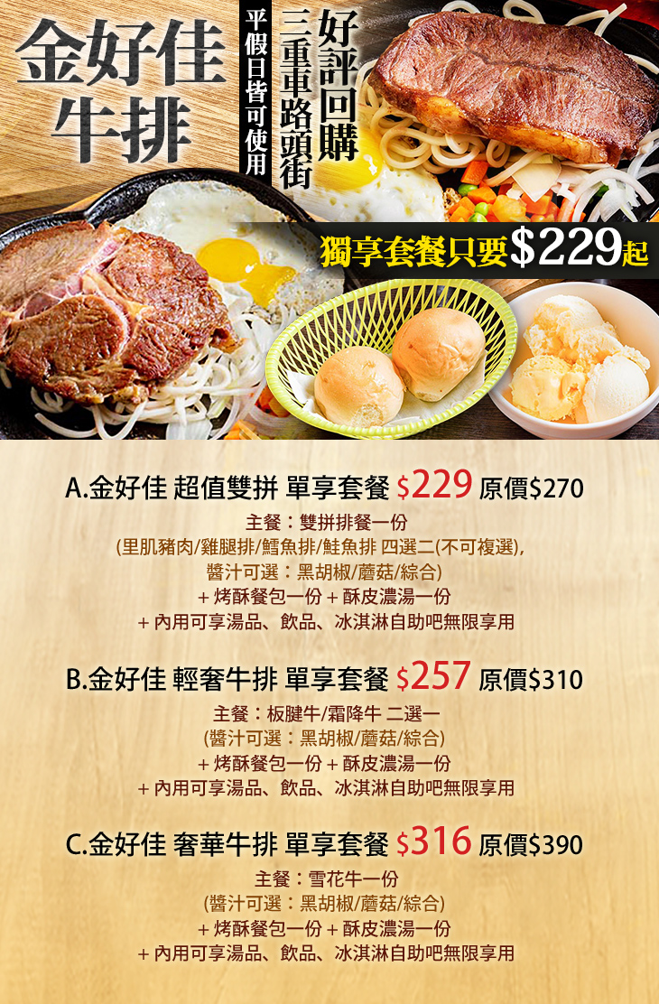 B.金好佳 輕奢牛排 單享套餐