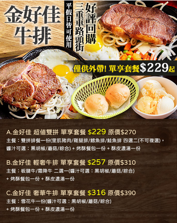 B.金好佳 輕奢牛排 單享套餐
