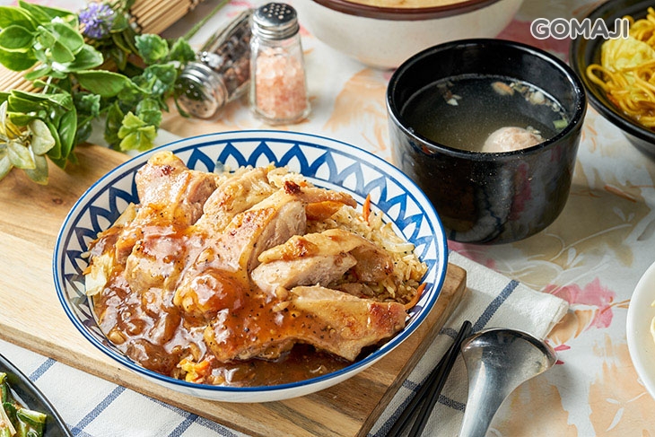 鮮嫩厚實的雞腿排,以乾煎手法料理的皮嫩帶有焦香,裏頭的肉則飽含肉汁、嫩又鮮美,澆淋上特製醬汁,和經典炒飯一同品味,感受雞肉天然的鮮甜與醬汁底蘊一拍即合,又和炒飯和諧共譜出絕妙的滋味,令人驚艷不已!