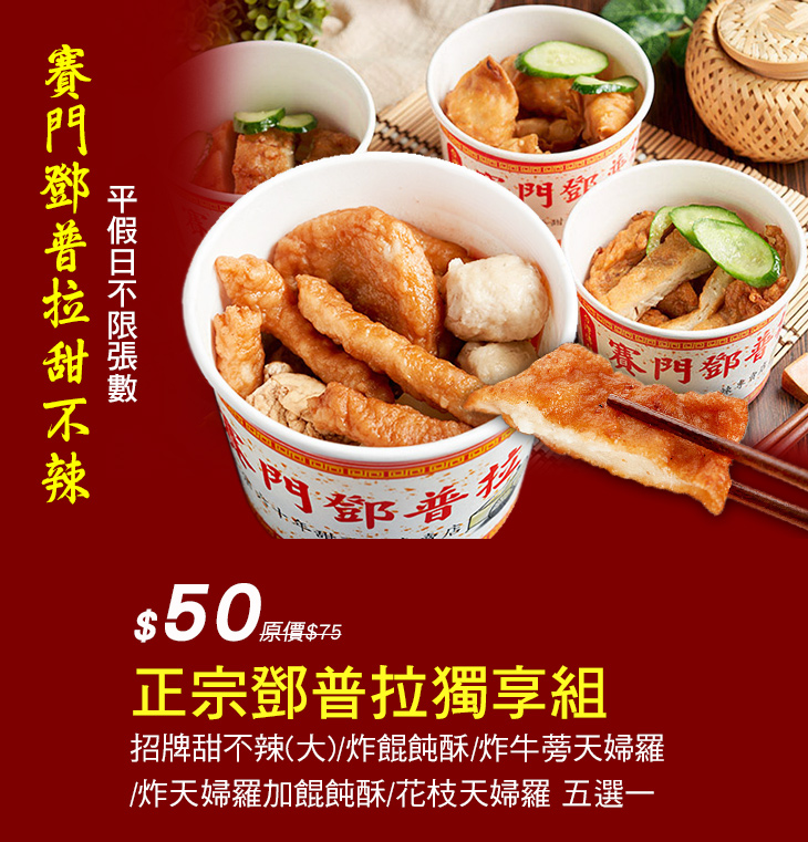 〈招牌甜不辣(大)/招牌甜不辣(小)/炸餛飩酥/炸牛蒡天婦羅/炸天婦羅加餛飩酥/花枝天婦羅 六選一〉