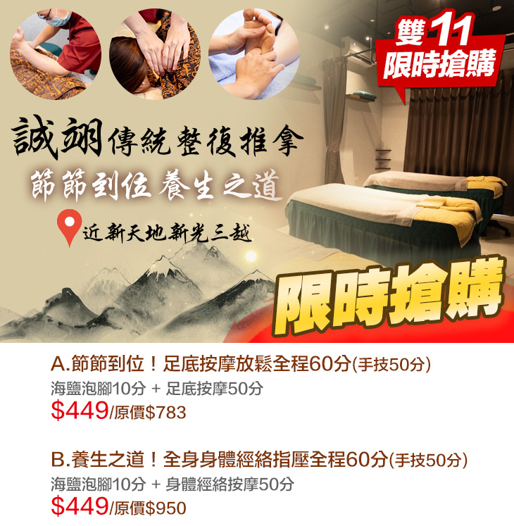 〈海鹽泡腳10分 + 身體經絡按摩50分〉