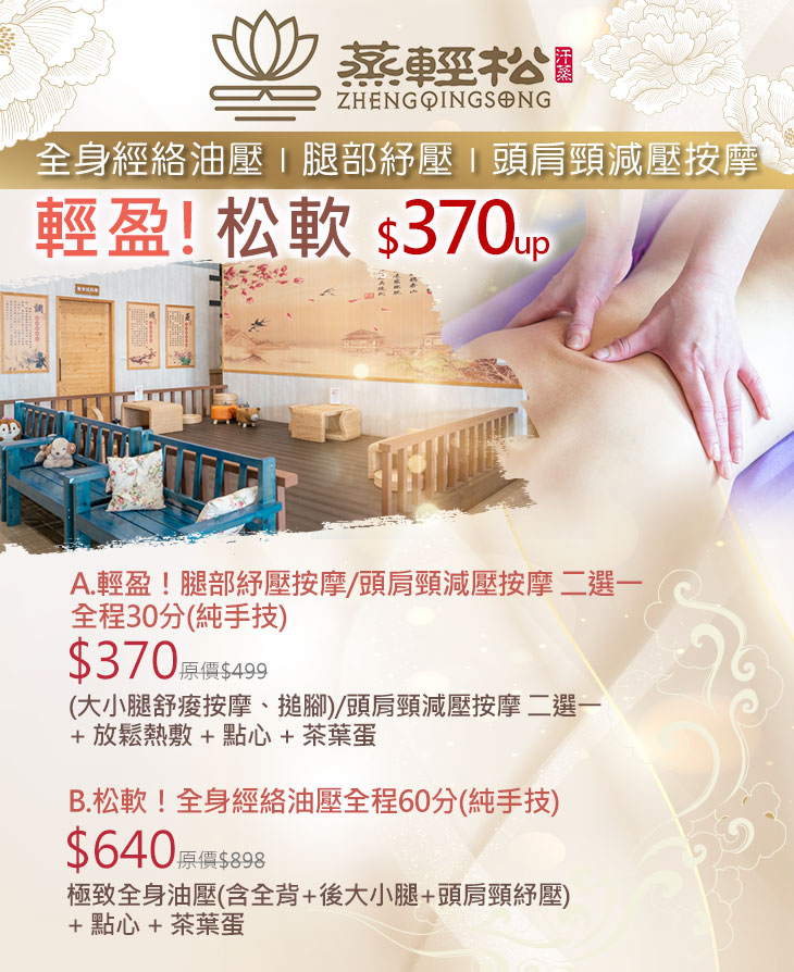 A.輕盈!腿部紓壓按摩/頭肩頸減壓按摩 二選一全程30分(純手技)