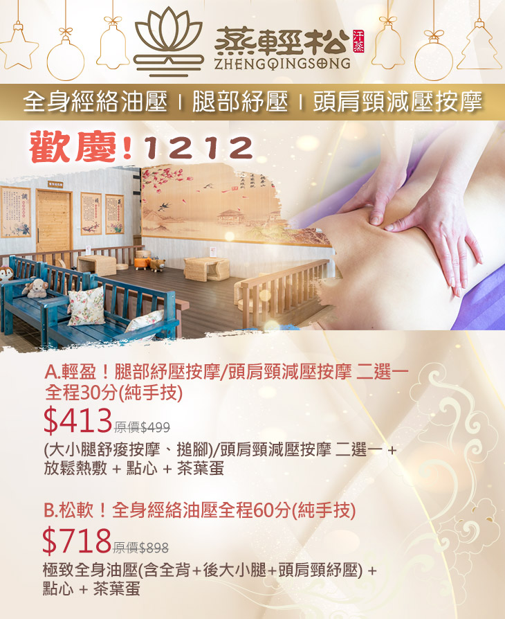 A.輕盈!腿部紓壓按摩/頭肩頸減壓按摩 二選一全程30分(純手技)