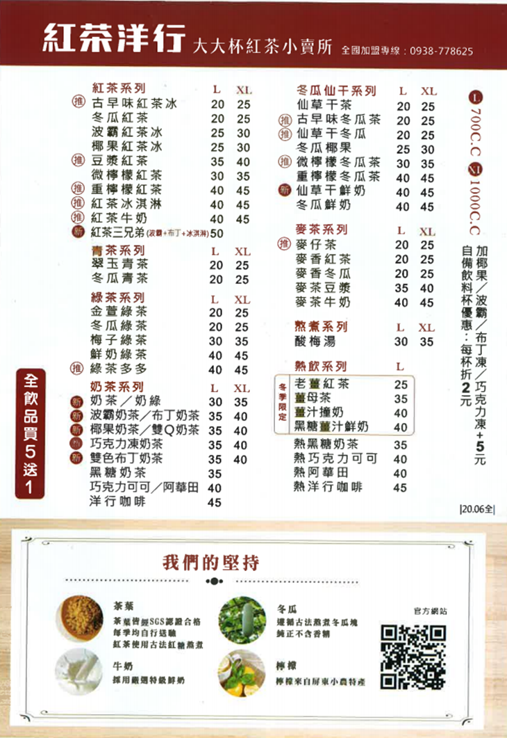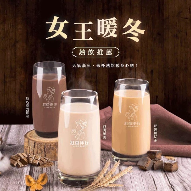 麻吉們有福了!想喝平價好茶飲不用刻意挑選良辰吉時,現在想喝就來【紅茶洋行】吧!這裡有誠意十足的各式茶飲,選用經嚴格認證合格茶葉,不分年紀都符合口味,遵循古法熬煮紅糖、冬瓜塊,還有嚴選特級鮮奶,才能造就出一杯杯經典好茶!讓你品嚐茶飲最自然的風味,透過茶飲喚起您記憶中真正美好的瞬間,那份令人懷念的滋味,值得用心好好感受,心動不如行動,快手刀購入一番吧!