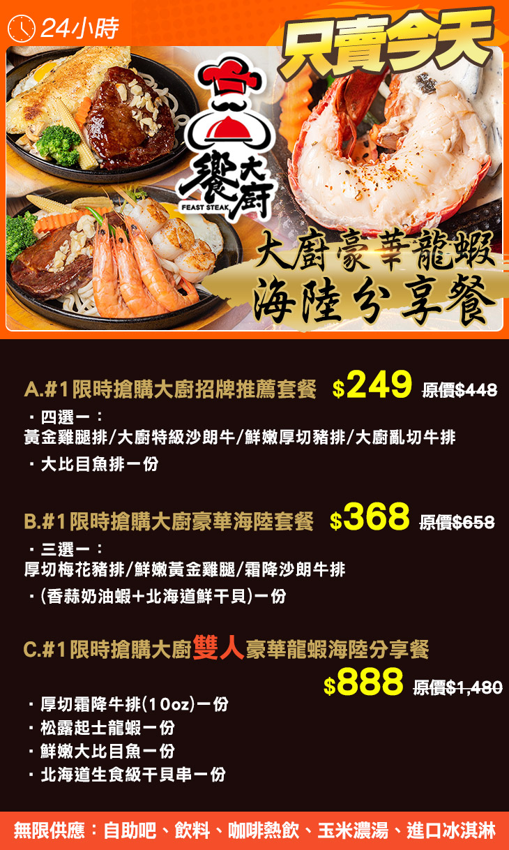 A.#1限時搶購大廚招牌推薦套餐 / B.#1限時搶購大廚豪華海陸套餐 / C.#1限時搶購大廚雙人豪華龍蝦海陸分享餐