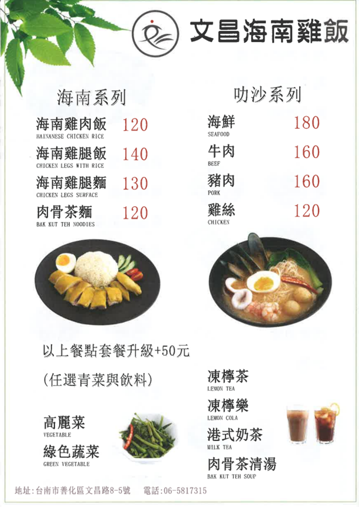 深受許多顧客喜愛的海南雞飯,是以醃製好的雞肉再配上香飯而成的一道料理,看似簡單但背後的製作過程可是相當繁瑣唷!「文昌海南雞飯」位於台南市善化區,以多年的料理經驗將異國特色完美融入料理之中,無論是經典的肉骨茶,或是軟嫩多汁的海南雞飯,在這裡通通都吃得到,讓您每每到來都能盡情享受獨特的南洋風情!