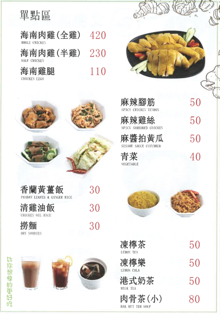 招牌推薦必吃!店家秉承著提供最棒美食的信念,使用產地直送新鮮溫體雞,肉質潤滑帶有彈性,雞皮的表面呈現金黃色是因為加入了黃薑,且用低溫方式烹煮,因此雞肉口感才會特別鮮嫩,再搭配三款秘製醬汁及黃薑飯,入口品嚐,米香、醬香、肉香完美融合並綻放於舌尖上,帶給您滿口美味、滿分幸福,絕佳的好味道,來店必點上一份才不虛此行呀!
