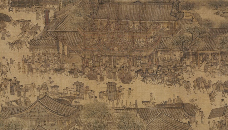 除了張擇端大名鼎鼎的第一個版本,後世臨仿者眾,據統計版本多達50多種,最著名是明代的仇英本和清代的清院本;三個版本各異其趣。宋本是士人視角,在乎人物的內心與個性,明本是世俗視角,以商人之眼捕捉世俗趣味,清本是帝王視角,畫出吉祥和王氣以迎合剛登基的乾隆皇帝。